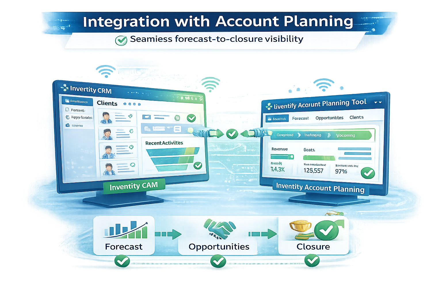 Inventify CRM works seamlessly with the Inventify Account Planning Tool to provide a complete “forecast-to-closure” visibility.